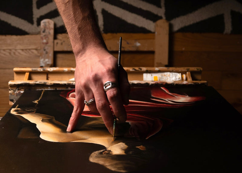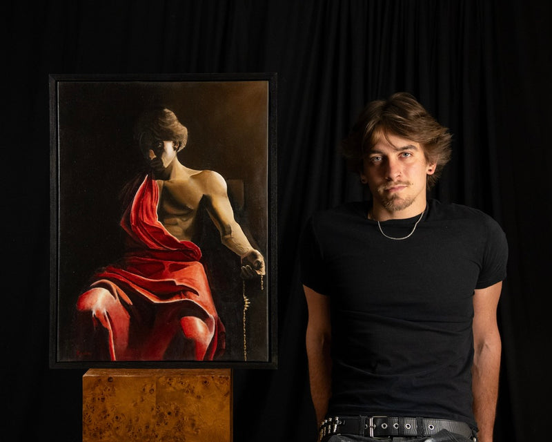 Influenced by classical painters, he employs traditional glazing techniques to build depth and atmosphere, allowing subtle shifts in value and color to emerge over time. His paintings explore solitude, using restraint and contrast to hold emotion rather than explain it.